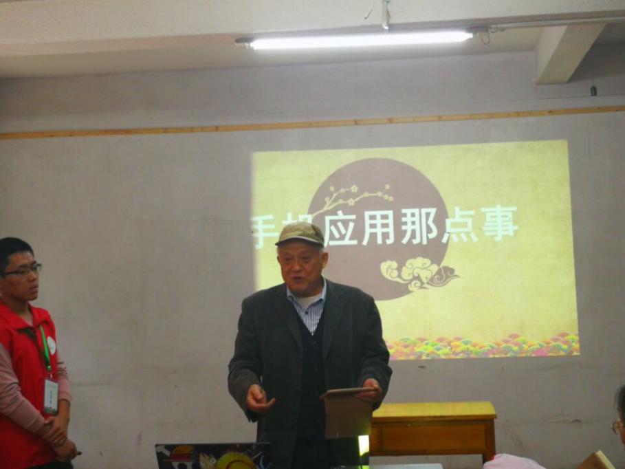 本次活动以“手机软件应用”为主题进行科普讲堂。讲堂开始后,主讲人 用PPT对“手机软件应用”进行讲解,讲解内容主要包括地图、日历、备忘录、文件管理、天气等应用。老人们对手机使用问题十分感兴趣,志愿者们热情地与老人交流,对讲解内容进行补充,并耐心地为老人解答疑惑。